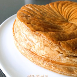 Cette galette, je la réalise avec une pâte feuilletée inversée, vous trouverez ma recette ici. Je vous encourage à la faire vous-même, elle est d’une finesse et d’une douceur incroyable. En plus, elle lèvera beaucoup et de façon bien régulière : vous en aurez plein les mirettes tellement votre galette sera jolie ;-)). Mais si vous ne souhaitez pas vous lancer dans cette aventure, sachez qu’une pâte feuilletée classique fonctionnera très bien également ; elle lèvera juste un peu moins régulièrement, mais le goût y sera ;-)).
