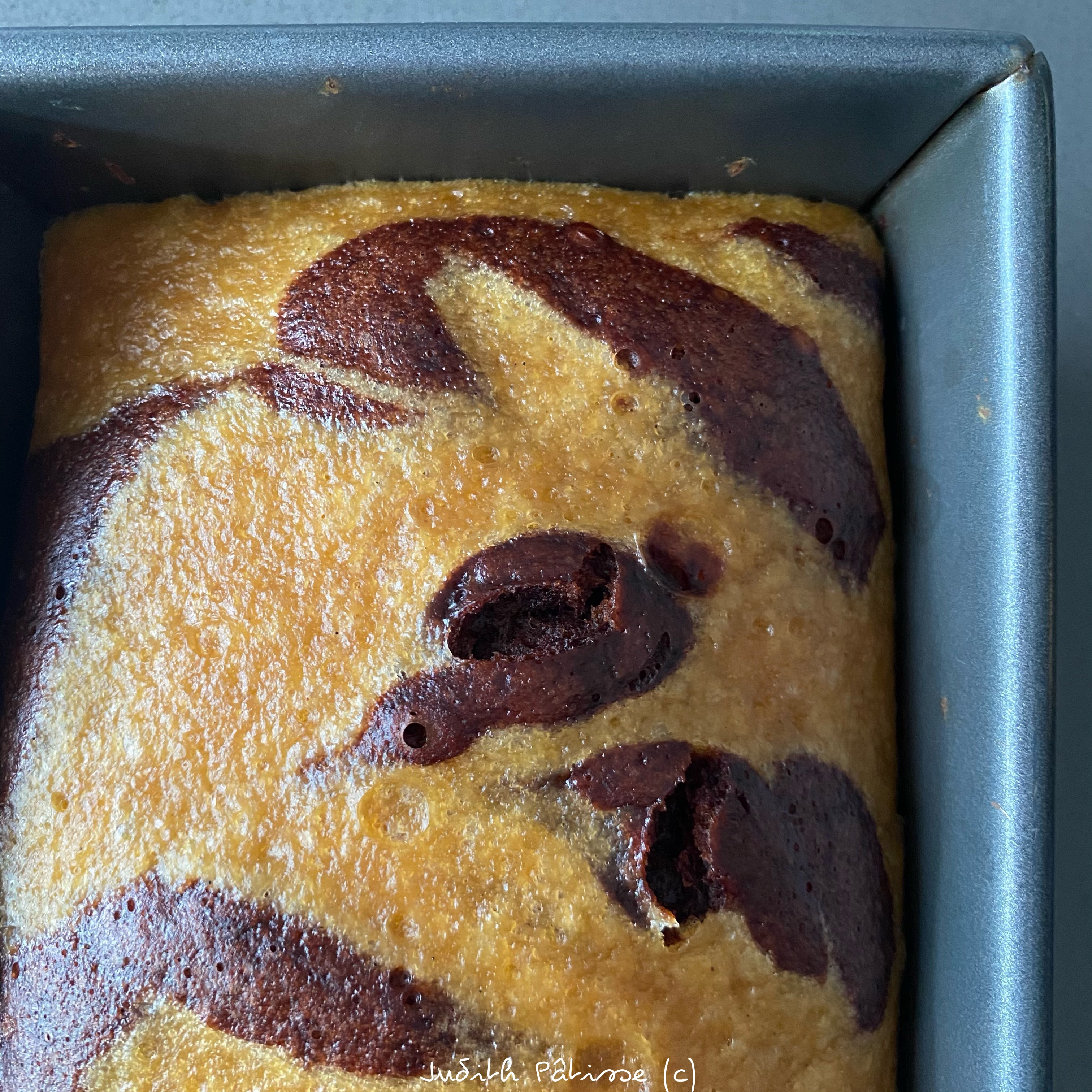 Pas besoin de beurrer-fariner le moule : vous déposerez simplement ce bout de papier sulfurisé au fond, et ce sera tout. Le marbré ne collera pas au moule, parole de Jude ;-))