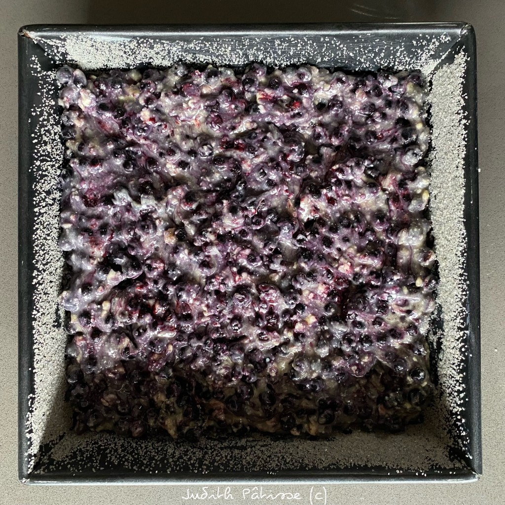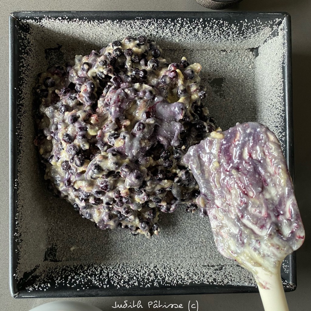 Puis mélangez l’ensemble délicatement pour ne pas écraser les fruits et juste ce qu’il faut pour les répartir dans la pâte.