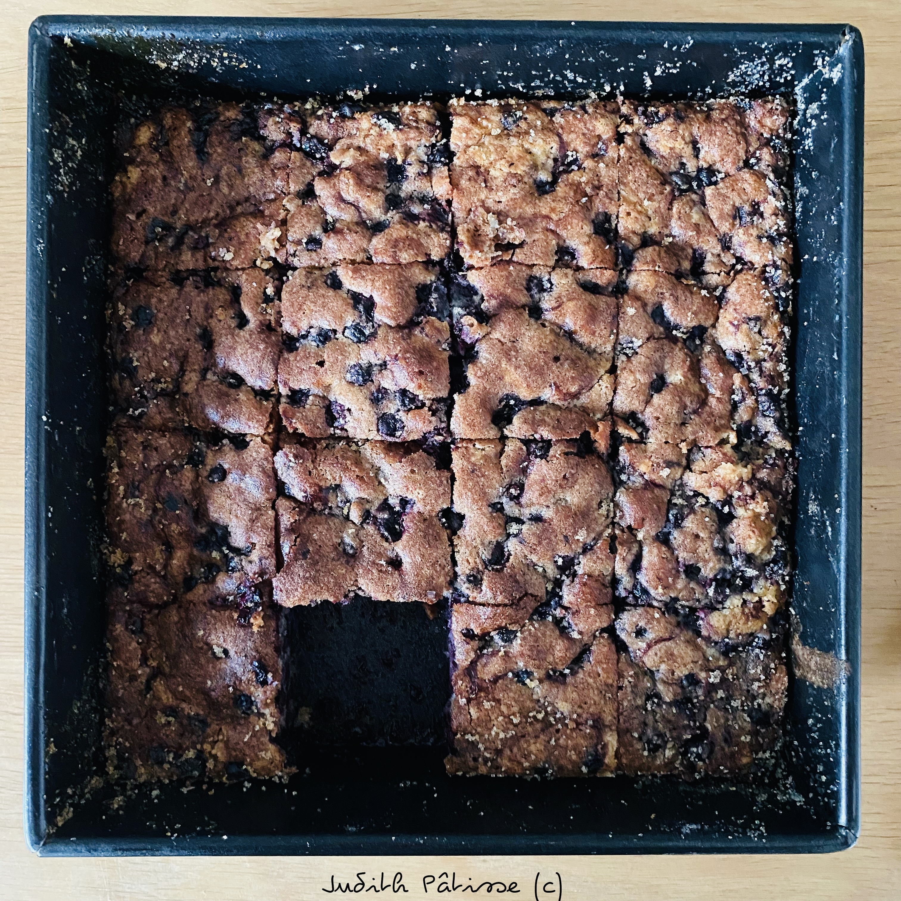 Au fait, je réalise ce moelleux dans un moule carré de 22cm de côté, et je coupe 16 parts dedans. Pas mal, hein ? C’est le même moule que j’utilise pour le gâteau au chocolat fondant de Trish