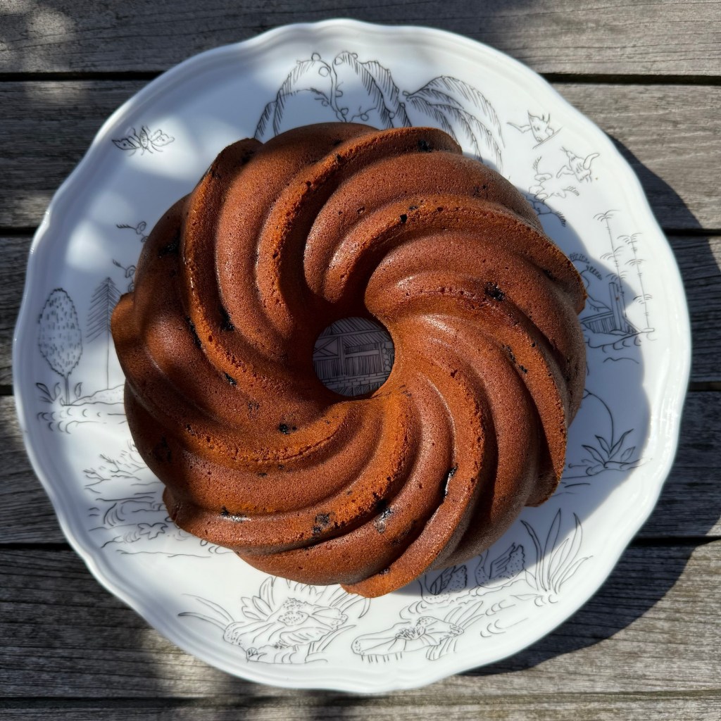 A la fin de la cuisson, laissez refroidir 15 minutes puis démoulez délicatement le cake sur un plat à service. Attendez qu’il refroidisse complètement pour le dévorer 😉
